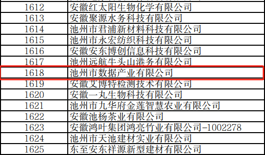 近日安徽省工業(yè)和信息化廳發(fā)布了2024年度專精特新中小企業(yè)公示名單集團(tuán)所屬池州市數(shù)據(jù)產(chǎn)業(yè)有限公司榮獲2024年度安徽省“專精特新”中小企業(yè)。