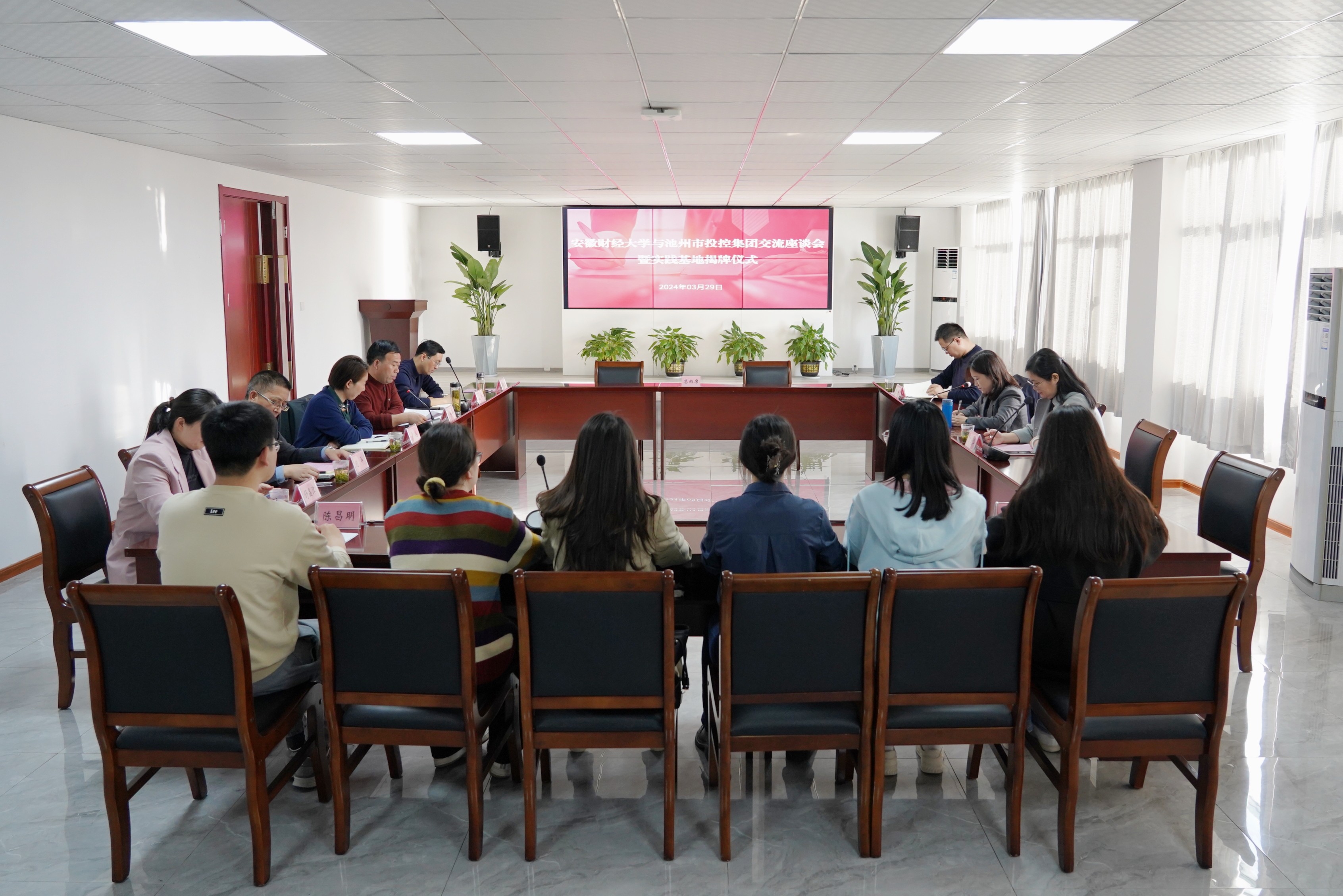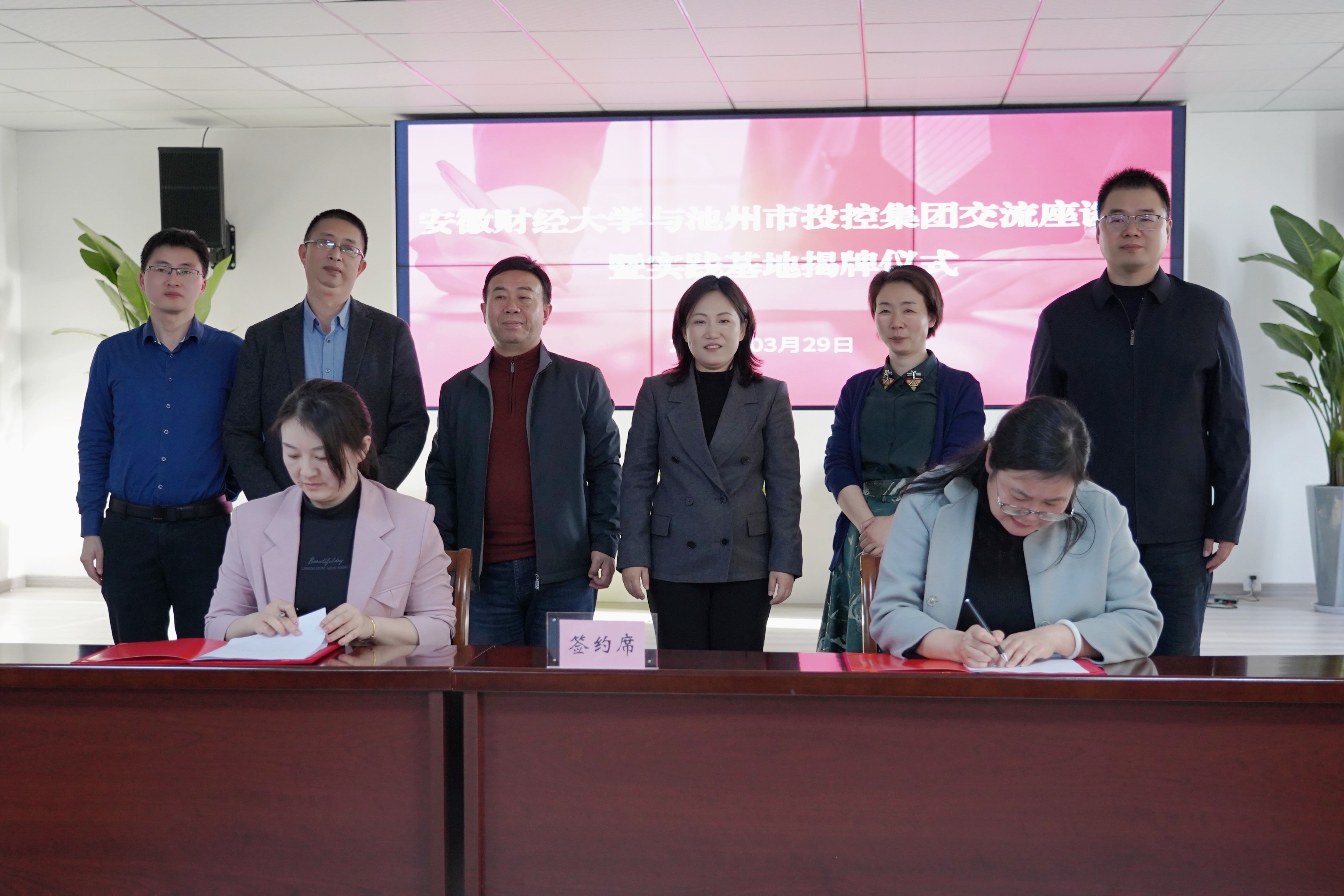 3月29日下午,安徽財經(jīng)大學與池州市投資控股集團舉行“就業(yè)創(chuàng)業(yè)實踐基地”簽約暨揭牌儀式。安財校黨委常委、副校長趙曉明,校學生處副處長丁龍華,校團委副書記袁寶剛,校團委兼職副書記董松濤,池州市人社局黨組成員、市人事考試指導中心主任章和平,市就業(yè)創(chuàng)業(yè)服務中心主任紀平,就業(yè)促進科科長孟華等有關領導參加活動。儀式由黨委副書記、工會主席嚴艷主持。